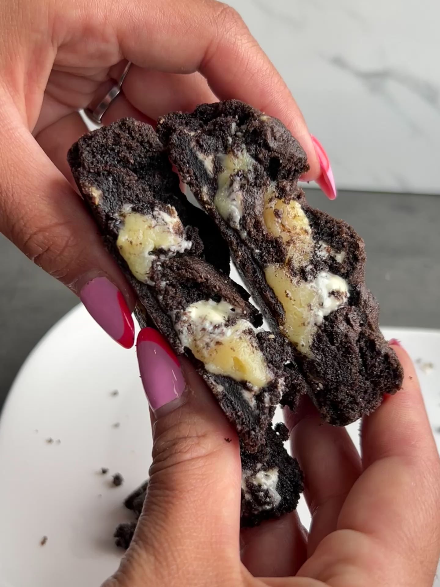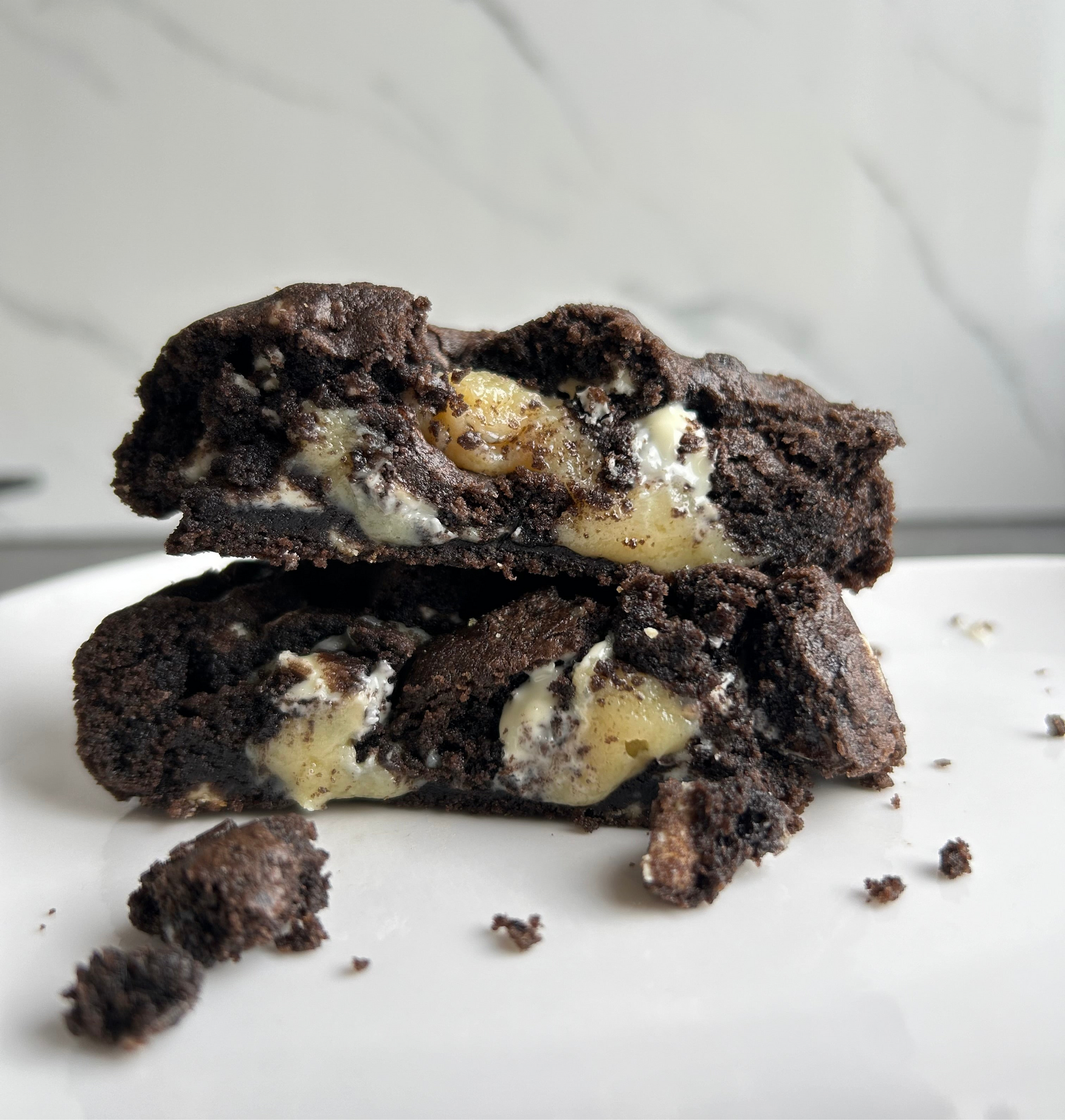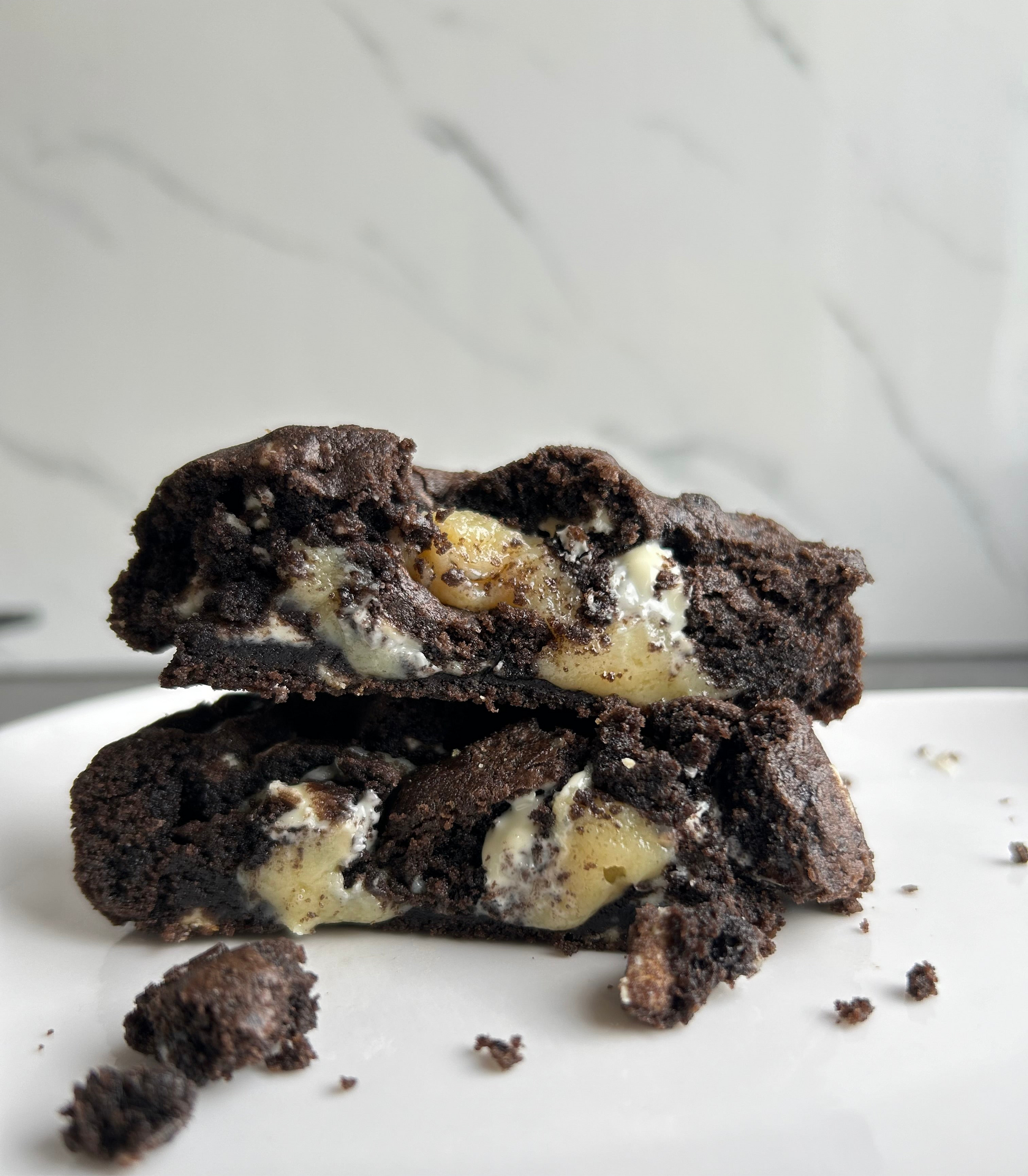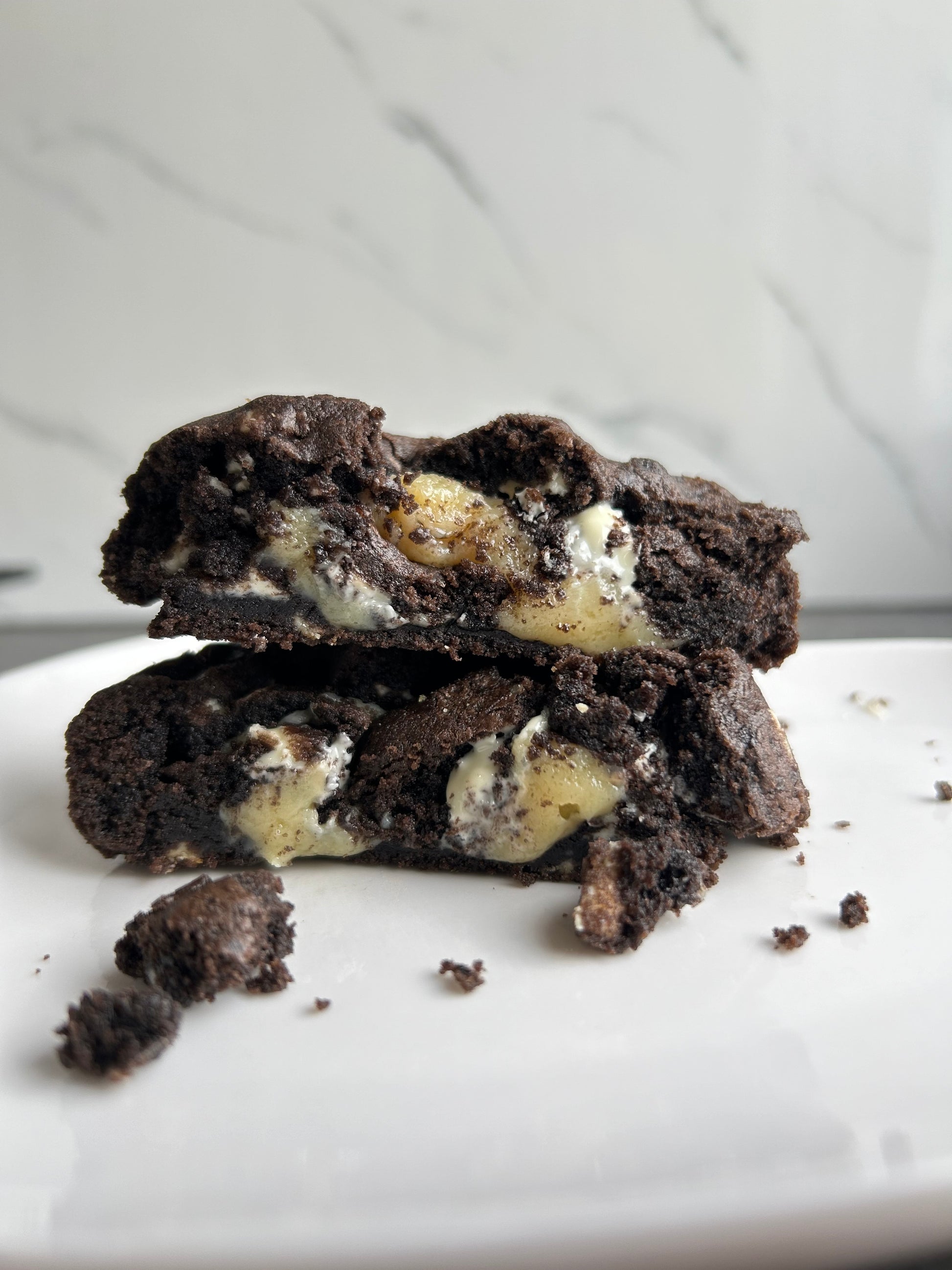 Una cookie intensa y sofisticada ⚫⚪. Masa de chocolate dark 🍫 con trozos de chocolate blanco 🤍 que crean el equilibrio perfecto. En su interior, un relleno suave y cremoso de chocolate blanco ✨ que transforma cada mordida en una experiencia única.